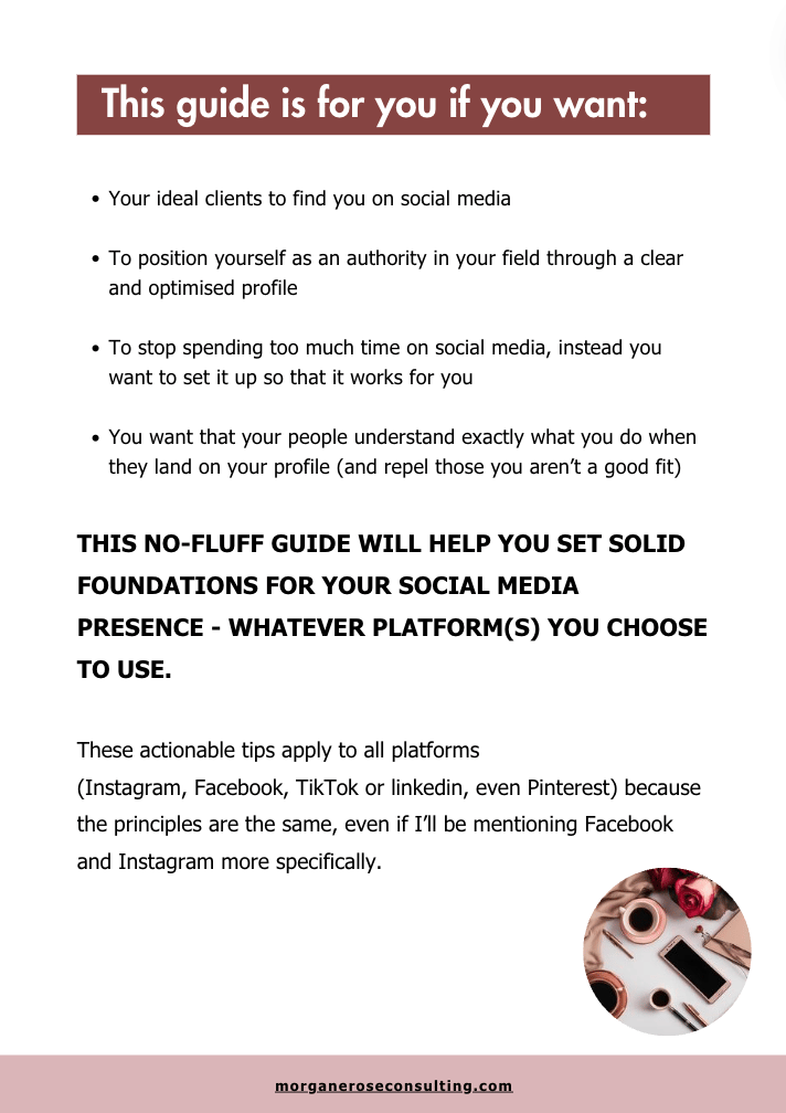 While the tips focus on Facebook and Instagram, the principles apply to all platforms, including TikTok, LinkedIn and Pinterest (although Pinterest is not a social media platform but a search engine, it still works!)